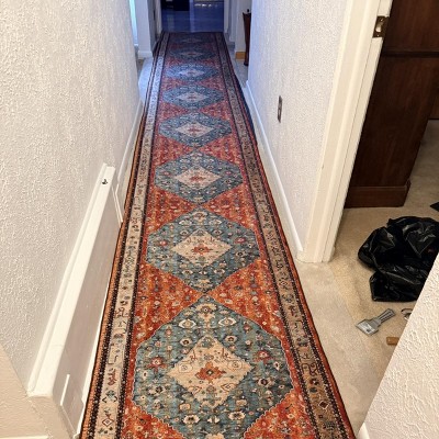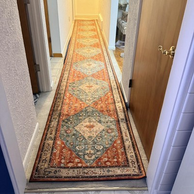 You just never know what a product is going to look like until you get it in your house. I love shopping online, but the regret is having to return many items until I find just the right one. If I settled with mediocre choices, my whole house would be a mixed-matched mess. this rug is really hard to explain unless you see it in person because it doesn’t feel like a real rug as in like a shag tight material that’s not there. It’s more like a mat if this makes sense. I spent a lot of time reading all the reviews, but I didn’t see anybody saying this and even if I did, I don’t know if I really would’ve understood it until seeing the rug myself. If I lived in Tucson, I think this rug would be perfect, but not for my Indiana home. I’m going to have to take this back along with the smaller size rug. I bought to a company it in my L-shaped hallway.