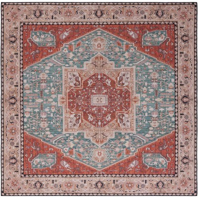 Tucson Vintage Persian TSN120 Machine Washable Skid & Stain Resistant Non-Shedding Power Loomed Indoor Area Rug - Aqua/Rust - 6'x6' - Safavieh