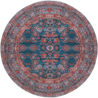 Tucson Vintage Persian TSN187 Machine Washable Skid & Stain Resistant Non-Shedding Power Loomed Indoor Area Rug - Blue/Grey - 6' Round - Safavieh