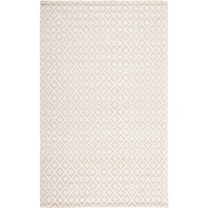 Transform your space with this elegant hand woven wool area rug from India. Measuring 5 feet by 8 feet, it is the perfect addition to any room, offering a delicate ivory and gold palette that complements modern decor. Its medium rectangle shape with a height of three eighths inches provides a sleek profile, while the geometric pattern adds a touch of contemporary flair.