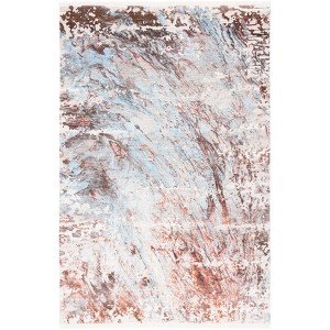 Each strand of the premium polyester fiber is woven to showcase a harmonious blend of blue and brown hues, exuding an air of sophistication and modernity. The dynamic pattern, defined by abstract streaks and splashes across the canvas, creates an eye-catching movement, reminiscent of a serene, windswept landscape. The clever use of color gradients makes this rug an artistic statement that effortlessly adapts to a range of interior decors.