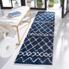 The striking navy and ivory color palette creates a bold contrast, with the diamond trellis pattern adding both visual interest and contemporary elegance to your living space. Easy to integrate and versatile, this runner is an excellent choice for those looking to add a touch of class without overwhelming their decor.
