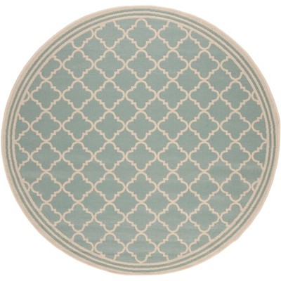 Beach House BHS138 POWER LOOMED Indoor/Outdoor Area Rug - Aqua/Cream - 8' Round - Safavieh
