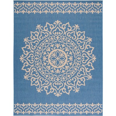 Displaying an intricate floral medallion pattern that exudes a sense of classic charm, the design is effortlessly chic and can accentuate any decor. The polypropylene composition ensures that this rug is robust, easy to clean, and resistant to the elements, making it a versatile choice for any setting.