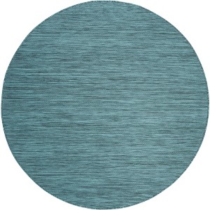 Elevate your living space with the striking simplicity and functional elegance of this 6'-7" x 6'-7" Round area rug. Boasting a serene turquoise hue, this beautifully crafted round rug infuses any room with a sense of calm sophistication. Constructed with a reliable PowerLoomed technique, it provides a consistent and precise pattern that exudes modern charm. Crafted from 100% Polypropylene Pile, this rug offers both durability and comfort, making it an ideal choice for high-traffic indoor areas or outdoor spaces seeking a touch of refinement. The modest pile height of 1/4" ensures easy maintenance and a sleek appearance, balancing softness with an unobtrusive profile. Imported directly from Ukraine, this rug offers a globally-inspired touch to your decor, bringing a piece of international craftsmanship into your home or office. Moreover, its OEKO-TEX certification ensures that it has been produced without harmful substances, offering peace of mind for your health and the environment. Looking closely at the pattern in the image, the rug features a subtle textural contrast that provides depth and interest. This minimalist yet captivating design lends itself seamlessly to various decorating styles, from contemporary to coastal, making it a versatile addition to any indoor or outdoor setting. Infuse your sanctuary with the understated beauty of this turquoise area rug, and enjoy the perfect combination of style, comfort, and sustainability.