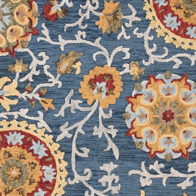 Crafted from the finest wool, this rug ensures durability and a luxurious feel. The charcoal base is gracefully complemented by a multi-color palette, featuring a timeless pattern that seamlessly blends traditional charm with modern aesthetics. The intricate floral and vine motifs are accentuated in a spectrum of rich hues including golden tans, deep blues, fiery reds, and soothing blues, creating an opulent and inviting atmosphere.