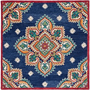 Blossom BLM561 Hand Tufted Indoor Area Rug - Navy/Ivory - 6'x6' - Safavieh