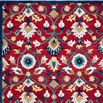The floral rugs of the Blossom Collection are bold, colorful updates of classic hooked rugs. Made using large hand woven loops, the texture of Blossom rugs inspires a fresh approach to country casual interiors. Woven of 100% wool, Blossom area rugs bring traditional English chintz and block print motifs into today's cultured home decor. Care Instructions: Vacuum Without Beater Bar