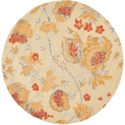 Blossom BLM680 Hand Hooked Area Rug - Beige/Multi - 6' Round - Safavieh.