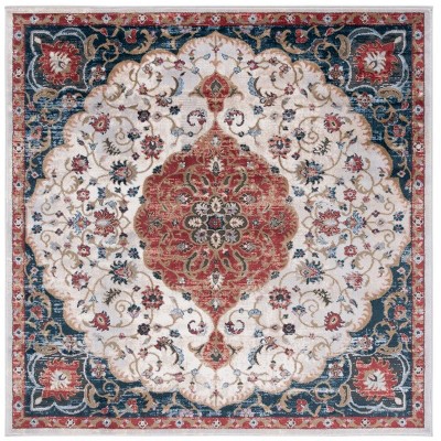 Embrace the timeless elegance and exquisite craftmanship of our 6'-7" X 6'-7" Square area rug, a perfect fusion of traditional charm and contemporary versatility. This enchanting piece boasts a harmonious blend of ivory and red hues, interlaced into an enchanting transitional style that will elevate the ambiance of any room.
