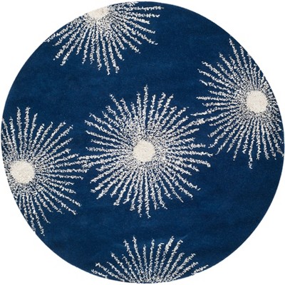 Braided BRA201 Machine Washable UV & Stain Resistant Non-Shedding Hand Woven Indoor/Outdoor Area Rug - Dark Blue/Ivory - 8' Round - Safavieh