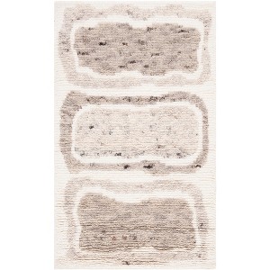The rug's small rectangle shape makes it an ideal addition to a variety of settings whether it be an intimate reading nook, a welcoming entryway, or a cozy fireplace. The rug's soothing ivory base is gracefully complemented by abstract brown accents, creating a pattern that is both sophisticated and understated.