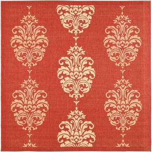 Elevate your living space with the timeless elegance of our 6'-7" X 6'-7" square area rug, a harmonious blend of RED and NATURAL hues crafted to perfection. Designed for both indoor and outdoor use, this exquisite piece exudes versatility, seamlessly transitioning from your cozy living room to your sunlit patio.