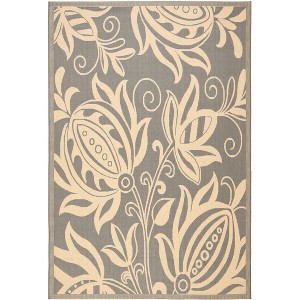 Courtyard CY2961 UV & Stain Resistant Non-Shedding Power Loomed Indoor/Outdoor Accent Rug - Grey/Natural - 4'x5'7" - Safavieh