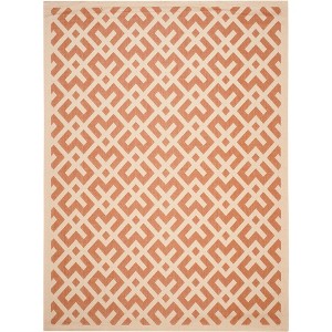 Introducing our sophisticated and durable area rug, sized at an ample 9' x 12', perfect for transforming any space. The warm terracotta hue paired with a crisp bone color creates a cozy yet elegant aesthetic that can breathe life into your indoor or outdoor settings. Designed with a symmetrical geometric pattern, this piece adds an element of structure and design to your floors.