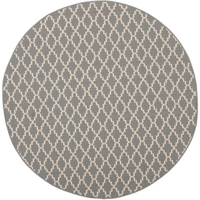 The rug's captivating blue and beige hues create a serene and inviting atmosphere, while its round shape adds a unique dimension to any room. The intricate trellis pattern exudes sophistication and elegance, making it a versatile piece for various decor styles.