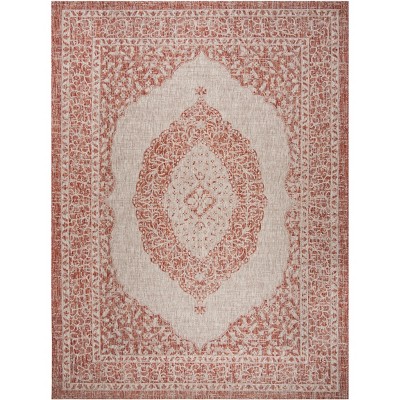 Elevate your space with the effortless elegance and durable craftsmanship of our 8' X 11' Light Beige/Terracotta area rug. Perfectly designed to enhance both indoor and outdoor settings, this large rectangular rug optimizes comfort and style with its modest 1/4" pile height.
