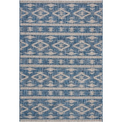 Courtyard CY8863 UV & Stain Resistant Non-Shedding Power Loomed Indoor/Outdoor Area Rug - Navy/Grey - 9'x12' - Safavieh