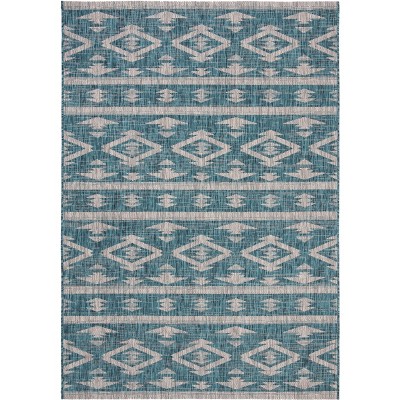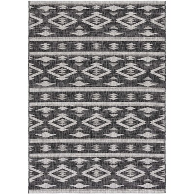 Courtyard CY8863 UV & Stain Resistant Non-Shedding Power Loomed Indoor/Outdoor Area Rug - Black/Grey - 6'7"x9'6" - Safavieh
