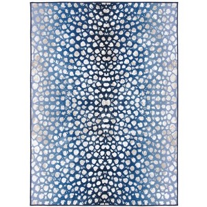 Transform your living space with a touch of contemporary elegance provided by our striking area rug, sized at a versatile 5'-5" X 7'-7". Boasting a harmonious blend of navy and beige hues, this medium rectangle-shaped accent piece offers a fashionable flare with its modern, abstract pattern, reminiscent of organic shapes and speckles. Crafted in Turkey, this rug exemplifies the precision of power-loomed construction and is made from high-quality polyamide fibers, providing both durability and a soft feel underfoot. Its 1/4" pile height is the perfect balance for easy door clearance while still delivering a plush texture to step on. In addition to its aesthetic appeal, this rug is also user-friendly. It's machine washable, making cleaning spills and maintaining its beauty a breeze. The slip-resistant quality ensures it stays in place, offering a combination of comfort and safety to any room. Furthermore, the OEKO-TEX certification ensures that the rug is free from harmful substances, giving you peace of mind for a healthier home environment. Whether you're looking to add sophistication to your living room, bedroom, or office, this contemporary area rug is an impeccable choice that artfully marries style with functionality.