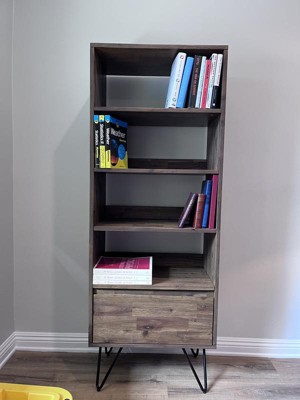 63.8" Saylor Tall Bookcase with Hairpin Legs & Drawer - WyndenHall: Industrial Design, Acacia Wood
