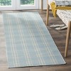 - Color Palette: Soft light blue forms the base of this charming runner, accented by subtle yellow stripes that add a warm and inviting touch to the design. The blend of these colors creates an airy, serene ambiance that's both elegant and uplifting.
