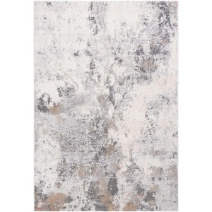 The luxurious blend of 35% polypropylene, 35% polyester, and 30% cotton creates a texture that is both soft to the touch and resilient against everyday wear. Artfully constructed, the rug features a captivating abstract pattern that flows with a granite-like grace, blending shades of gentle ivory and striking grey to create a serene yet sophisticated floor piece that complements contemporary decor.