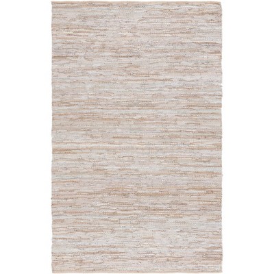 Introducing our exquisite collection, the Beige Elegance Leather-Cotton Blend Area Rug, meticulously handwoven by skilled artisans from India. This captivating 4' x 6' small rectangle piece is a testament to timeless craftsmanship, fusing traditional weaving techniques with a contemporary flair.