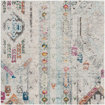 Discover the allure of the Bohemian style with this exquisite area rug. Measuring 5 feet by 5 feet, its square shape fits seamlessly into any room. The elegant grey and blue hues blend beautifully with the intricate Oriental pattern, adding a touch of sophistication to your decor. Crafted with a balanced mix of 57 percent polypropylene, 30 percent cotton, and 13 percent polyester, this rug offers texture and comfort.