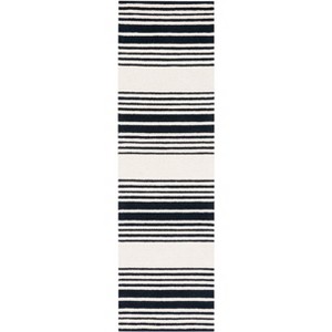 Transform your living space with the elegant simplicity of this Ivory/Black runner area rug. Measuring a convenient 2'-3" X 8', this piece is a stunning addition to any long hallway or narrow space, bringing both comfort and contemporary style to your home. Hand-tufted in India, this runner showcases exquisite craftsmanship and attention to detail. The robust construction combines premium wool with cotton, featuring a latex backing for added durability and a comfortable 3/8" pile height that is gentle underfoot. The striking contemporary style of this runner is characterized by its bold striped pattern. Uniform bands of rich black alternate with soft ivory, creating a clean, sophisticated look that complements a variety of decor settings. The contrast between the two colors adds an eye-catching element to the design, embodying modern elegance while remaining incredibly versatile. Perfect for those who appreciate the beauty of minimalist design and the luxury of high-quality materials, this area rug promises to enhance the ambiance of any room. Whether anchoring your entryway, lining your kitchen, or adding a touch of refinement to your living area, this runner rug is a perfect choice for a sleek, modern home.