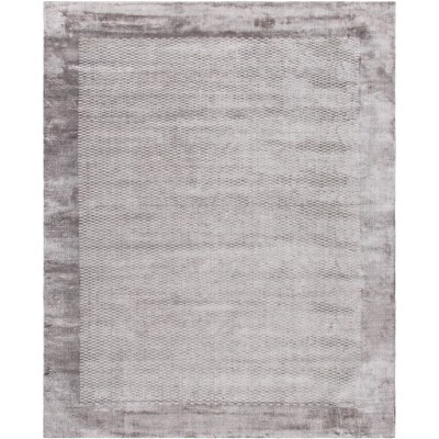 Elevate your space with this exquisite 8' X 10' grey area rug, a grand centerpiece that blends contemporary design with traditional hand-loomed artistry. Constructed from luxurious viscose, this rug boasts a plush 3/4" pile height that invites your feet to sink into comfort. Meticulously crafted in India, its zoom rectangular shape makes it an ideal foundation for both living and dining areas.