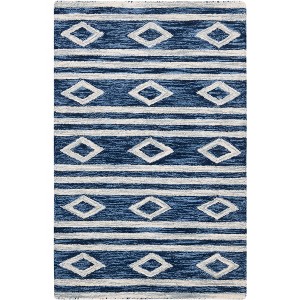 Introducing a stunning area rug that captures the essence of bohemian elegance. Measuring at 2 feet 6 inches by 4 feet, this navy and ivory wool rug offers a subtle sophistication to any room. Its accent shape with a sleek 1/8 inch height enhances your space without overwhelming it. Hand-tufted in India, the craftsmanship showcases attention to detail and artistry. The absence of a pattern emphasizes the beautiful color blend, adding a serene touch to your decor. Perfect for living rooms or bedrooms, this versatile piece brings warmth and comfort while complementing various styles. Elevate your home with this exquisite addition that promises to inspire tranquility and charm.