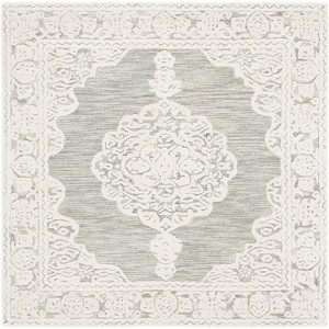 Transform your living space with the elegant charm of our traditional style square area rug. Measuring 5 feet by 5 feet, this rug features a sophisticated color palette in grey and ivory, effortlessly blending with any decor. Crafted using the hand-tufted technique, this piece combines 80 percent wool with 20 percent cotton, providing a comfortable and inviting feel underfoot. With a height of 1/2 inch, this rug is designed for subtlety and grace. Made in India, it reflects a heritage of artistry and craftsmanship. Elevate your home with a touch of timeless elegance and simplicity.
