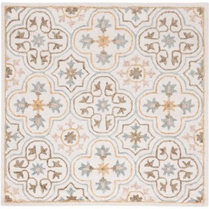 Elevate your living space with this hand-tufted square rug, created in India. Measuring 5'0" by 5'0" with a low-profile height of 1/4", its subtle ivory and grey tones are perfect for enhancing any decor. Crafted from 80 percent wool and 20 percent cotton, this rug exudes comfort and style. The traditional design complements its surroundings, offering a versatile addition to your home. Embrace the simplicity of a pattern-free design and experience the unique blend of craftsmanship and elegance. Perfect for adding a touch of sophistication, this rug effortlessly fits into living rooms, bedrooms, or entryways.