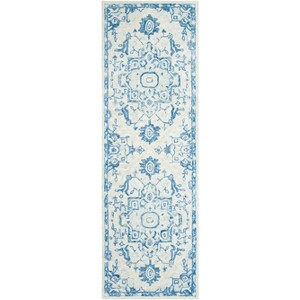 Elevate the elegance of your home with this stunning hand tufted runner. Measuring 2'-3" by 17'-0", it is the perfect addition to any hallway or entryway. The exquisite interplay of ivory and blue creates a soothing color palette that complements a range of decorative styles. Crafted from 85% wool and 15% cotton, this rug offers both comfort and durability. Its 1/4" pile height provides a soft underfoot experience without compromising on style.