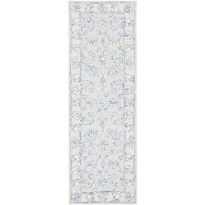 Elevate your living space with our traditional style accent rug, crafted with care in India. Measuring 2'-3" by 5'-0", this hand tufted masterpiece features a lovely blend of blue and beige tones, offering a refined touch to any room. The oriental pattern adds a classic element, perfectly complementing both modern and timeless decor. Made with a combination of wool, cotton, and latex, this rug promises to be a cozy addition underfoot. The 1/4" height ensures an inviting surface while maintaining easy placement under furniture. Add a touch of elegance and warmth to your home with this beautifully crafted piece.