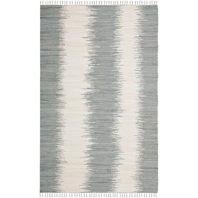 Transform your space with this elegant grey and ivory area rug in a 5' x 8' medium rectangle size. Perfect for adding a touch of bohemian style, this handwoven rug is crafted from cotton, ensuring a soft texture underfoot. The subtle design, free from intricate patterns, allows it to blend seamlessly with your existing decor. Originating from India, this rug offers a serene, calming presence for any room. The modest height of 3/8" provides comfort without overwhelming your floor space. Whether you're enhancing your living room, bedroom, or study, this rug creates an inviting atmosphere with its simple and understated elegance. Add a touch of style and warmth to your home with this versatile decorative piece.