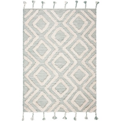 Elevate your home with the timeless elegance of our Hand Woven Aqua/Ivory Area Rug. Crafted with meticulous attention to detail, this 5' x 8' medium rectangle rug is a harmonious blend of traditional craftsmanship and contemporary design, perfect for creating a serene and inviting atmosphere in any room.