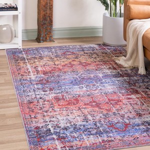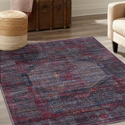 Timeless looks on washable rugs; what's not to love? With bright contemporary colors an inspired medallion designs, the Renaissance Collection brings home worldly design in a low-maintenance package. Durable modern materials and a cotton backing mean cleaning is as easy as throwing it in the washing machine! The printed traditional designs are available in bold colors ranging from dark blacks and blues to bright greens and pinks blend together like tie-dye, giving you lots of options. A subtle abrash gives the rugs a casual, distressed look perfect for bohemian and shabby-chic decor.