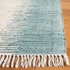 Elevate your living space with the serene sophistication of our handwoven area rug, showcasing a captivating blend of blue hues, crafted in a medium rectangle size of 5' X 8'. Each rug is meticulously crafted by skilled artisans in India, using pure cotton that ensures a soft touch and long-lasting durability.