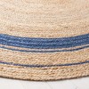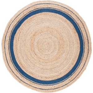 With its low pile height of 1/4 inch, this round area rug is an understated yet chic addition that promises easy maintenance. Whether gracing your living room, dining area, or bedroom, this rug's artfully contrasting navy and natural tones, combined with the organic beauty of the jute, will create an ambiance of warmth and style that's sure to impress.