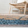 The earthy natural and bold navy hues merge in a harmonious balance, giving this rug a sophisticated look that can complement both contemporary and traditional decors. The unique pattern, as seen in the image, features an interlocking diamond design that exudes a sense of order and elegance.