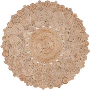 Designed for those who appreciate the beauty of nature, the rug exhibits a harmonious blend of robust, earthy tones, exuding an undeniable warmth and organic charm. The artisanal construction showcases a unique pattern of spiraled jute braids and delicate interlacing, creating a captivating visual that draws in the eye, offering both comfort and style underfoot.