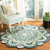 Transform your space with our captivating round area rug, designed to breathe life into any room with its striking Bohemian style. Measuring 8 feet by 8 feet, this ivory and blue masterpiece is the perfect addition to your home decor. Expertly crafted in India using the hand tufted weave technique, its combination of wool and cotton with latex ensures a soft yet durable texture underfoot. The subtle blend of materials and colors adds warmth and charm, making it a versatile accessory that harmonizes with both contemporary and traditional settings. With a thickness of 3/8 inches, this rug offers a comfortable surface while maintaining its elegant appeal. Its unique round shape and absence of pattern create a serene backdrop that will enhance your existing furniture and accessories, adding a touch of understated elegance to your living space. Discover the beauty and artistry encapsulated in this stunning piece and let it become the highlight of your home decor.