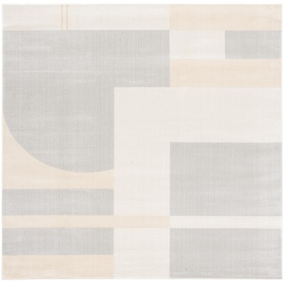 Elevate your living space with the timeless elegance of our 6'-7" X 6'-7" Square Area Rug. This exquisite piece of home decor harmoniously blends a contemporary style with a classic color palette of sophisticated grey and warm ivory. The square rug is characterized by an eye-catching geometric pattern that delicately balances bold lines and soft hues, forming a captivating focal point in any room.