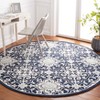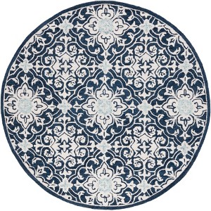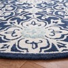 A sophisticated navy forms the backdrop of the rug, with intricate light blue floral and ornate patterns delivering a classic yet contemporary aesthetic. This rug will breathe life into your floors, lending an air of regality and charm to any decor.