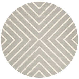Elevate your living space with the sophisticated charm of our 5' x 5' Round area rug, a stunning addition to any room. Its chic grey and ivory color palette effortlessly harmonizes with your existing decor, while the contemporary geometric chevron pattern introduces a dynamic visual interest that captivates and delights.