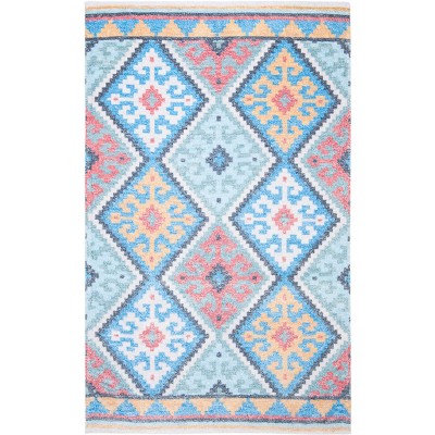 Saffron Area Rugs bring the magnificent designs of classic oriental rugs to flat weave floor coverings. These trendy rugs are hand loomed and color printed with traditional patterns revived in engaging hues. It's a mod boho look styled for today's unbound decor tastes. Care Instructions: Vacuum Without Beater Bar