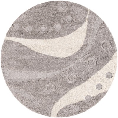 Introducing our captivating round area rug, sized at an ample 6 feet 7 inches diameter, designed to elevate any room with its lush shag style. The sophisticated Grey and Ivory color palette seamlessly blends with a variety of decorative themes, offering versatility and elegance.