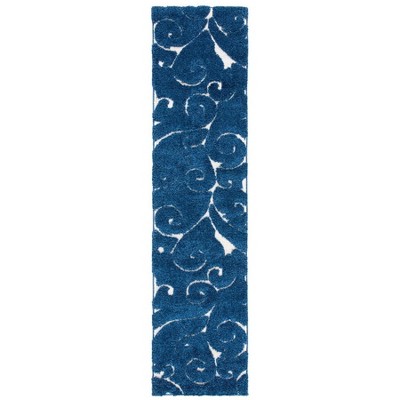 Florida Shag SG472 Power Loomed Indoor Runner Rug - Dark Blue/Cream - 2'3"x9' - Safavieh